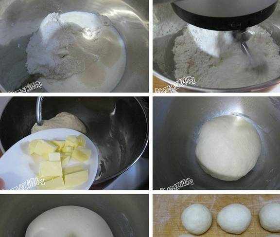 3.十分钟后加入20克软化好的黄油继续和面15分钟