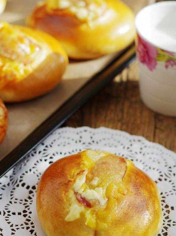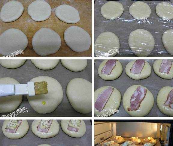 辅料:培根100克马苏里拉30克沙拉酱30克牛奶200克盐2克白糖25克鸡蛋10克酵母5克黄油20克