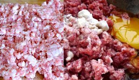 2、先将从早市买回家的新鲜的猪肉放在水龙头的流水下,冲洗掉表层的污血和杂质。把猪肉切成厚片状,再铺在菜板之上,用刀剁成肉糜状。把肉馅装入一个小盆中,往里打入一个鸡蛋,再依次加入些许的料酒、白胡椒粉、食盐,用筷子顺着一个方位进行均匀地搅拌上劲。