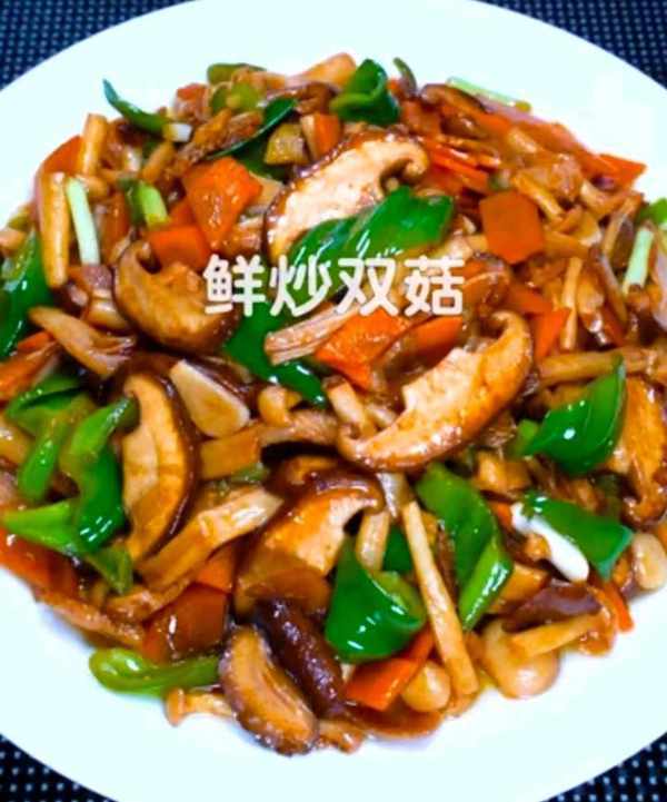 倒入香菇和白玉菇大火翻炒几下,然后放入青椒和胡萝卜大火炒至断生。