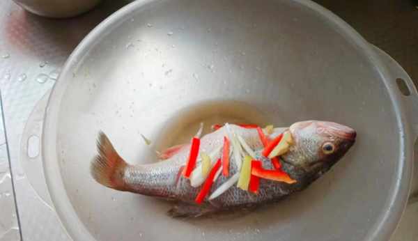食材:鲈鱼,葱姜,红椒,胡椒粉,盐,蒸鱼豉油