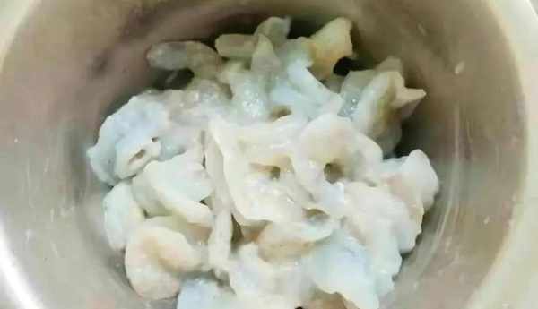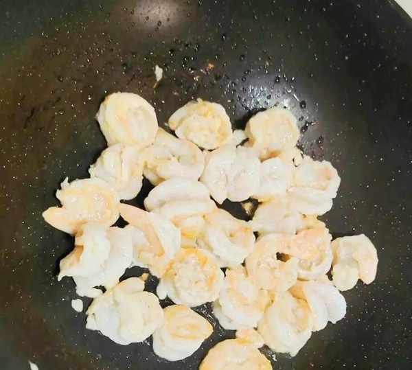 3、锅里烧油,把腌好的虾仁滑熟盛出备用