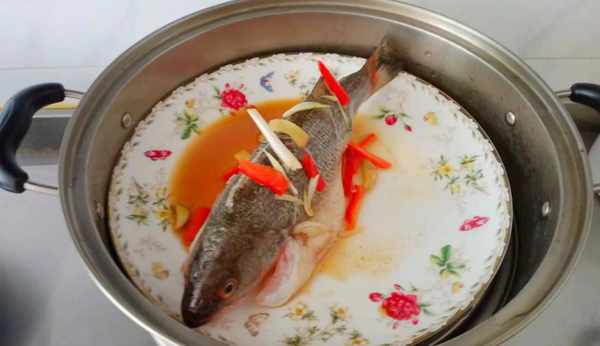 2、起锅烧水,水开后把腌好的鲈鱼放在篦子上,大火蒸八分钟就可以了
