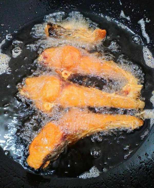 小贴士:料汁可随自己的口味搭配,五香味、糖醋味;鱼在炸的过程中,不要随意翻动,容易碎,一面炸至金黄后再翻面