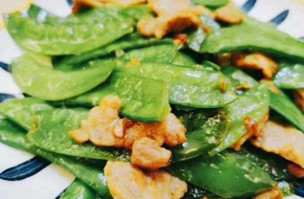 4,起锅烧油,油热后,放入肉片翻炒变色,放入切好的葱、姜、蒜翻炒一下,倒入适量的十三香、酱油翻炒均匀,倒入焯过水的扁豆翻炒一会,加入适量的盐和味极鲜翻炒均匀,即可出锅装盘食用。