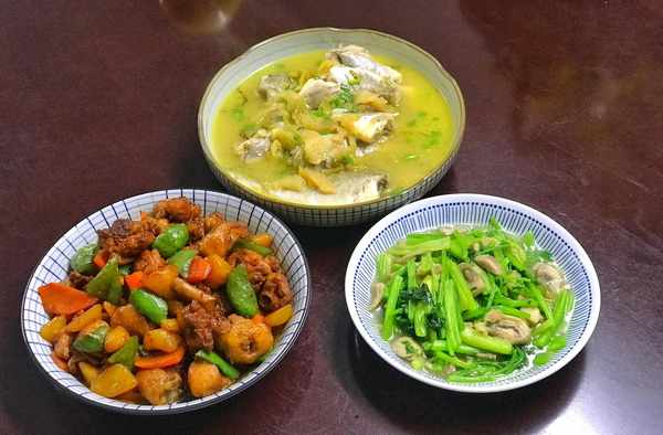 我们家晚餐一般做3个菜,一个荤菜,一个素菜,另外一个荤素搭配的小炒菜,有时候换个汤,如果双休遇上喜欢的菜会再加一个。做法基本是炒,蒸相结合,这样,节省了时间,下班后一般30-40分钟就能吃上,天冷的话菜也不会凉,伙食费一般控制在60左右,不浪费吃得也舒坦,来看看今天我们家的晚餐,荤素3个家常菜,做法很简单,好吃又下饭。