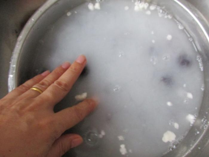 可以清晰的看到表面漂著很多的雜質,這時就可以進行沖洗。浸泡的時間不要太長,太長了反而不好。
