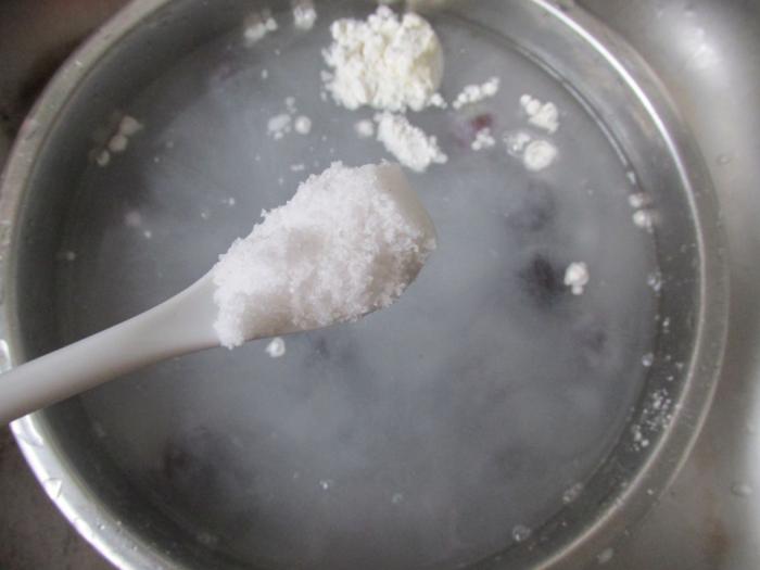 再加入一勺食鹽,鹽的有殺菌的作用,用來浸泡葡萄可以去掉殘留的農藥,殺菌消毒。