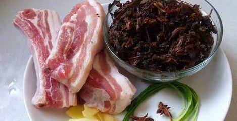 主料就是梅干菜和五花肉,配料上选择料酒,酱油,蚝油,八角桂皮,大葱,姜,冰糖,水淀粉等。