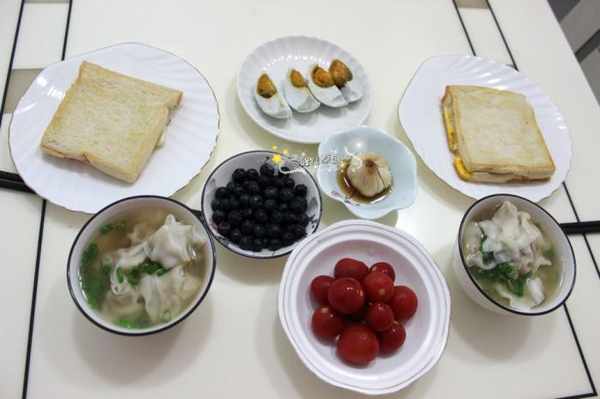 這一餐是孩子最喜歡的,餛飩我家從來都不會斷,每次都是包完了速凍,吃的時候一煮就完成,簡單易做。三明治就更簡單了,吐司片和雞蛋的完美組合。