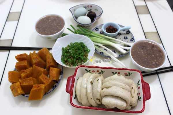 四:蔥花卷+糙米粥+蒸南瓜+酸豆角+煮蛋+無花果