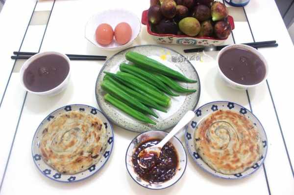 這款早餐不用半小時就上桌,先把米糊做上,雞蛋煮上,然後把冰柜的梅乾菜餅拿出放到電餅鐺中烙制,再汆燙秋葵,拌蘸料,摘下無花果清洗乾淨。簡單快捷吧,等到無花果清洗好了,梅乾菜餅也就烙好了,米糊,煮蛋都搞定。