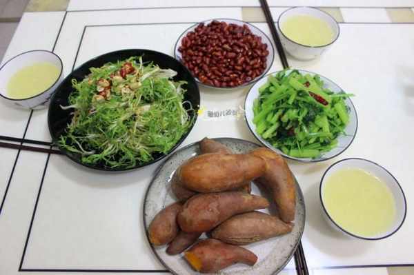 二:煮地瓜+荷葉米粥+大拌生菜+清炒芹菜+油炸花生米