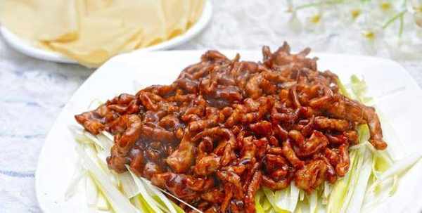 京酱肉丝,和鱼香肉丝并驾齐驱的一道名菜,做法简单却鲜美异常。成菜后,咸甜适中,酱香浓郁,风味独特。大葱含有挥发油,油中主要成分为蒜素,又含有二烯内基硫醚、草酸钙。此外,还含有脂肠、胡萝卜素、维生素B和C、烟酸、钙、镁、铁等成分。中医认为,大葱能够用于预防风寒感冒、恶寒发热、头痛鼻塞、阴寒腹痛、痢疾泄泻、虫积内阻、乳汁不通、二便不利等病症。