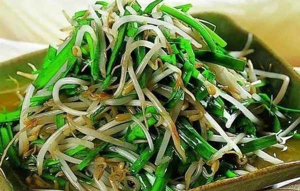 配料:400克豆芽,少量韭菜。