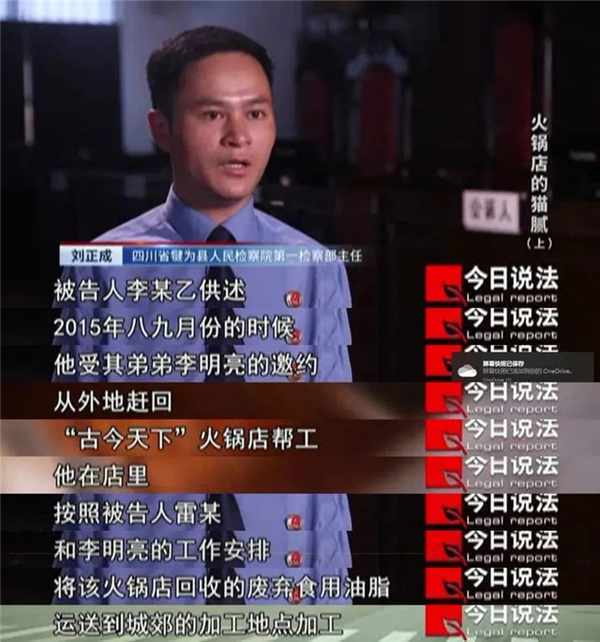 經詢問,火鍋店老闆雷某承認,在2018年10月1日至2019年1月29日期間,使用廢棄油脂加工清油火鍋底油。除雷某本人,知道火鍋底料有問題的,還有火鍋底料的炒制師傅李明亮(化名),和負責火鍋底油分裝的師傅李某乙,兩人是一對兄弟。