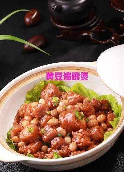 猪蹄300克,黄豆100克。生姜、葱各10克,盐、味精、白糖、胡椒粉和枸杞各少许。