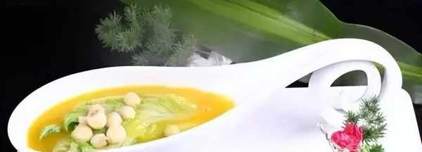 调料:自制浓汤200克、金瓜汁10克、盐3克、味精4克、鸡汁2克、白糖2克、劲倍鸡素3克、鸡油6克。