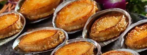3、炒锅下牛油将入味好的中鲍鱼煎香,装入原壳中,石板烧热下牛油、洋葱丝、中鲍鱼,淋上自制鲍汁,西兰花点缀即可。
