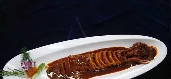 2、将鲜鱿鱼放入压力锅内加调料,焖压至软烂捞出解刀装盘;