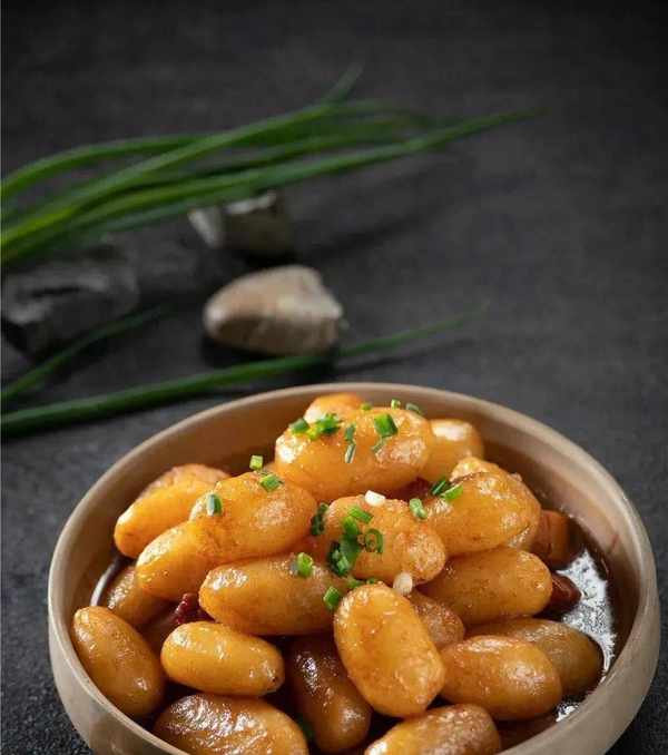 庐山小土豆500克,五花肉块75克,葱花,高汤,盐。
