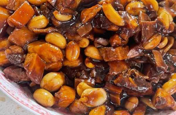 顾名思义,八宝辣酱中含有八宝,鸡胗、虾仁、鲜笋等,这里就不一一列出了,浓油赤酱,它算是一一具备了。