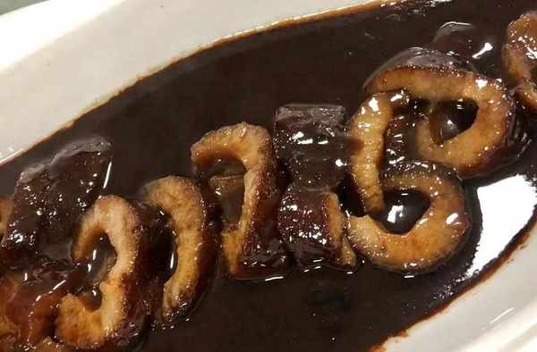 虾子大乌参是沪菜传统名菜,浓稠的原汁是水菱粉勾芡的,淋在乌参上面,瞬间散发出香气。