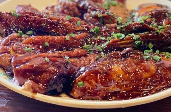 鱼尾不断、鱼肉不烂,酱汁浓稠,鱼皮外脆这道青鱼肉吃起来没有腥味,酱香味浓郁,微微甜的口感,一口吃进嘴里就是经典的沪菜风味。