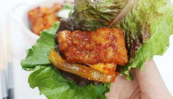 可以用生菜包着吃。包的时候准备些尖椒片和蒜片,别有一番风味哦。