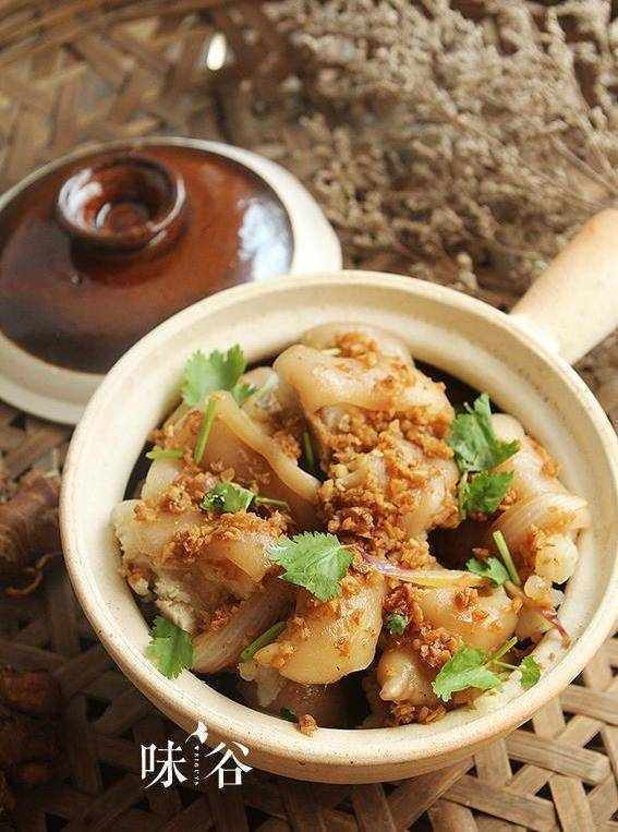 这道沙姜猪蹄就是猪蹄煮熟后马上投入凉水中浸泡,让猪蹄吃起来口感脆爽,再淋上用开胃消食的沙姜加上生抽等调料做成的酱汁,沙姜特有的辛香,让猪蹄香而不腻。