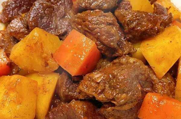 3、炖至牛肉软烂入味,再放入土豆和胡萝卜,继续炖煮15分钟左右。煮至所有食材都软烂即可,然后夹出香料,大火收汁即可出锅。