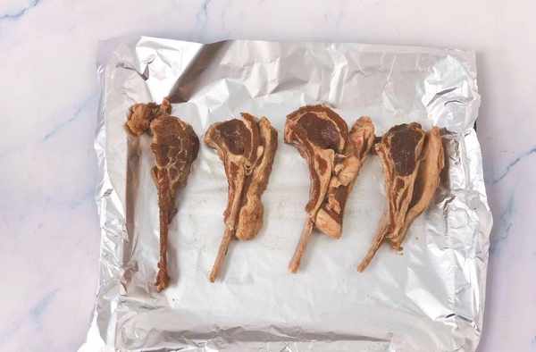 5.准备好的羊排放在烤盘上入烤箱160度烤15分钟。