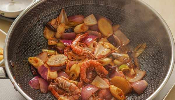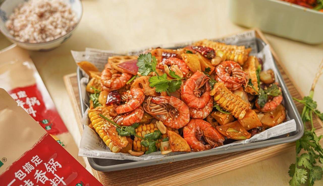 食材:大虾、土豆、洋葱、干辣椒、花生、莲藕、玉米、葱姜蒜、白芝麻、香菜、麻辣香锅调料