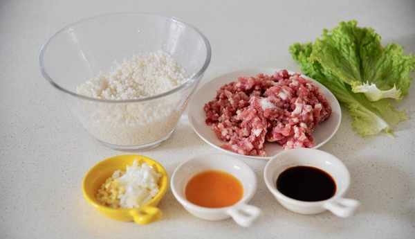 1.糯米提前浸泡上,猪肉剁成肉馅,藕切成碎末,葱姜切末。
