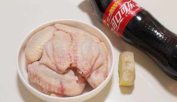 食材:鸡翅、可乐、老抽、盐、鸡精、葱姜、八角