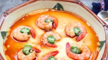 材料:鸡蛋、鲜虾、秋葵、盐、油、酱油、胡椒粉、清水