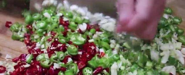 今天教大家做一个剁椒酱,这是从集市上买的一斤的青龙辣椒,下面先给他用清水清洗一下,把清洗好的青红辣椒放在盖子上面,等一下拿出去晾晒。先把根据去掉,清洗的时候不要区分地,只要水分容易进到辣椒里面,不容易存放,水分浸到辣椒里面以后存放的时间比较短,先把红辣椒切一下,所有的辣椒已经切完了,我们来切点姜末,这个家也要用没有水分的洗净晾干的,
