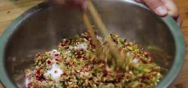 这样容易保存,和大蒜也一样,也要用洗净晾干的,所有的食材都要用没有水分的。你再把蒜压一下,特别好的算是不是更容易切一下?这样算不容易跑的。把他们全部放在一起,把所有的食材剁碎,先用这样碾压的方式,放在盆里,下面我们放入食用盐,