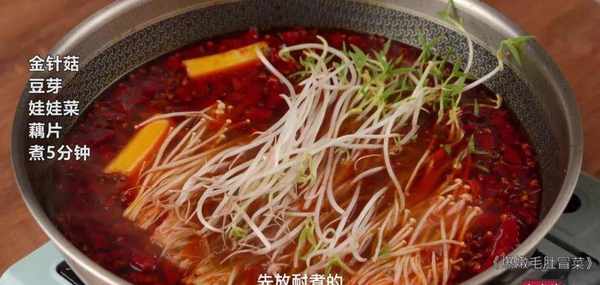 金针菇、莲藕、豆芽、娃娃菜、鸭血