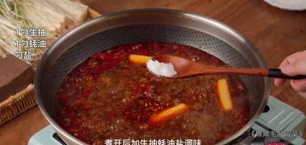 煮开后加生抽,蚝油,盐,调个味,这样简单的汤底就完成了~