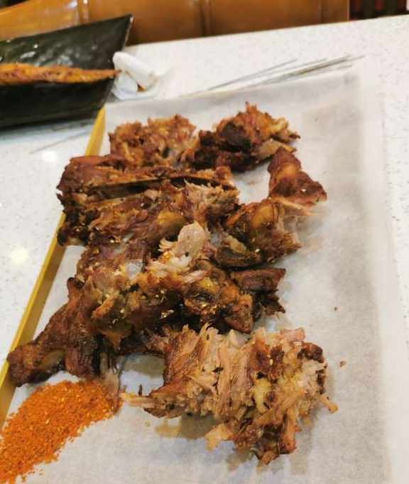 他家的菜品樣式倒是很多,可惜我忘了拍照。除了全方位覆蓋的福斯燒烤:蔬菜、肉串和海鮮,還有最近很流行的麻辣涮串以及各類主食,也有他家特色的烤大骨頭。因為我們只有三個人,便沒有"大點特點",除了普通的烤串,只是多點了一份招牌大骨頭。
