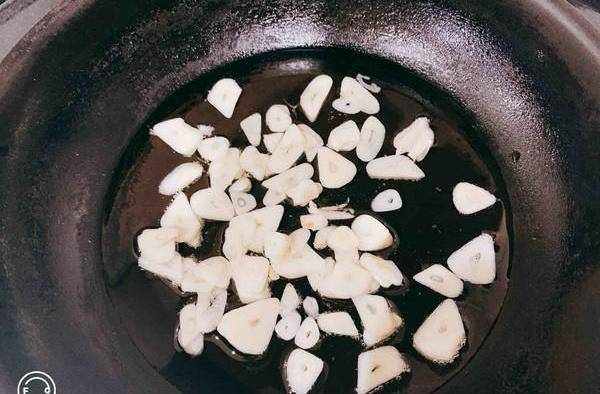 4.冷油冷锅、假大蒜铺好、用中小火