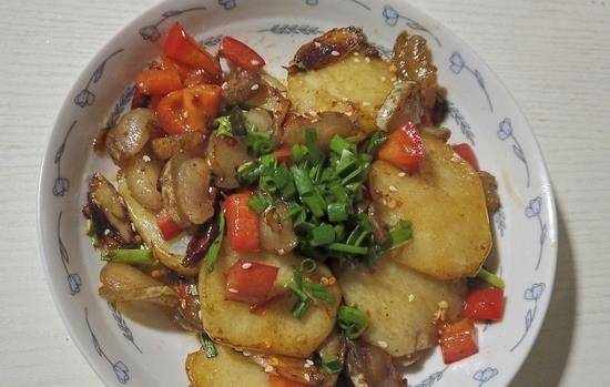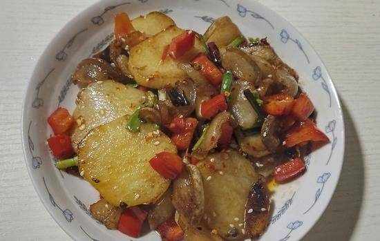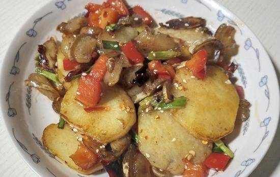 入冬后就馋这菜,鲜香辣爽,一口一片吃着好过瘾。好久没回娘家吃饭了,家里只有老人在家,小的都上学了,妈妈说我们家的人都爱吃辣的,就是每一餐都必须有点辣椒才才饭,所以做的家常菜都是辣味的居多,入冬后妈妈就馋这菜,鲜香辣爽,土豆是自家种在后院,毕竟在农村嘛,地方宽敞,喜欢吃什么瓜果蔬菜的都会种一些,老爸也喜欢吃土豆,所以妈妈每年都会种一些够自己吃,说起土豆,营养可真丰富,在北方土豆又叫山药蛋,东北的喜欢炖土豆吃,可我们南方喜欢炒土豆吃,土豆管怎么做都好吃的,和肉片一起炒就更香了,再放少许辣椒,鲜蒜,蒜瓣煸香,一口一片吃着真的好过瘾的。