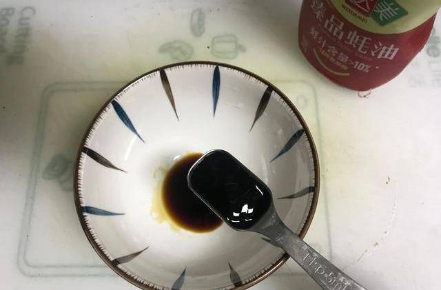 7、同时倒入蚝油,搅拌均匀即可,如图所示。