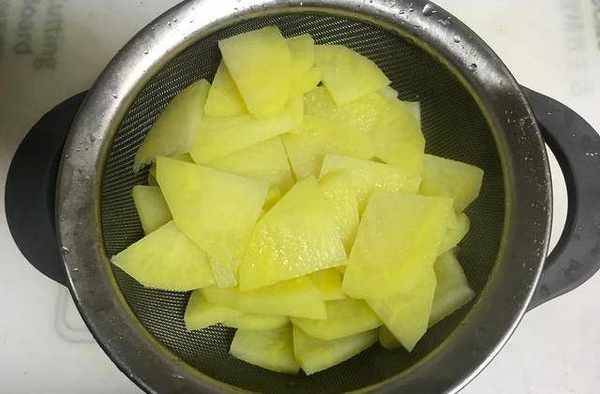 3、将焯过水的土豆片捞出沥干备用,如图所示。