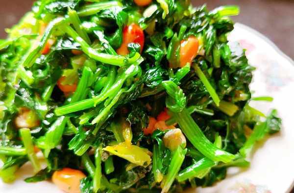 【食材和配料】:菠菜,花生米,生姜,蒜,食用油,盐,芝麻油,鸡精。