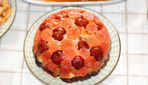 这道菜简直是我家从年三十到正月十五做了不知道多少次了,每次加入的食材都不一样,这次是以橘饼、蜜枣、红枣、葡萄干为主做成的,有感兴趣的可以翻看我之前的菜谱,有详细的做法哈。