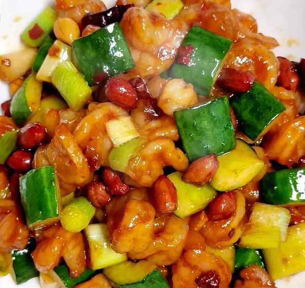 这道菜酸甜可口,黄瓜脆爽,虾仁Q弹,花生酥脆,小孩特别爱吃。