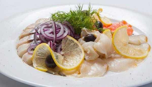 3.锅内留油,将葱段略炒,倒入鱼片,调汁加入白汤搅匀后迅速倒入锅内勾芡,转动炒锅至汤汁稠浓时,浇上熟猪油,出锅即成。