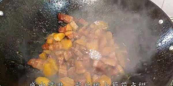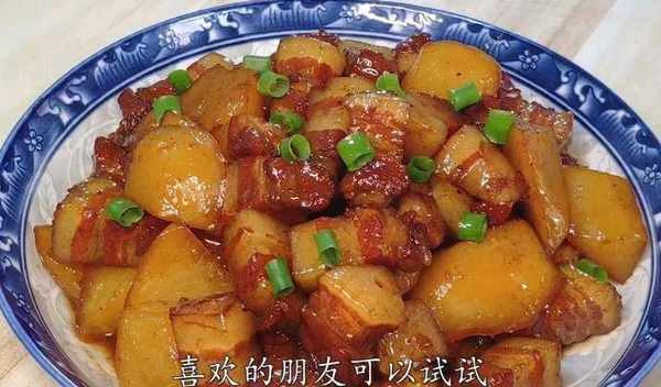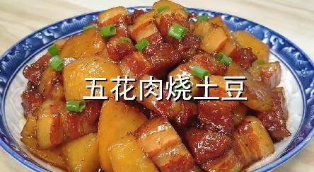 盛出装盘,最后撒上葱花点缀,这样一道五花肉烧土豆就做好了。